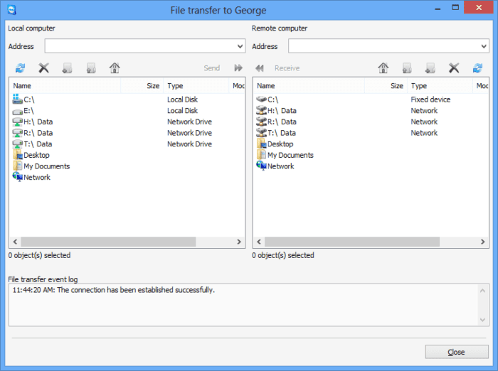 - تبادل الملفات من كلا الطرفين كالمستندات الهامة والبرامج.